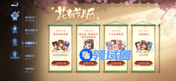 ② 玩家点击活动页签上的立即订阅,即可订阅该活动,并在活动关键进程阶段收到相关的活动信息提醒;