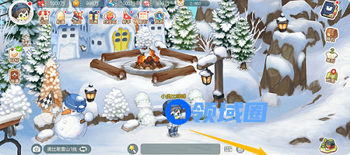 1、位置:地图传送到“奥比斯雪山”后,往下方走一点点,即可到达场地啦。