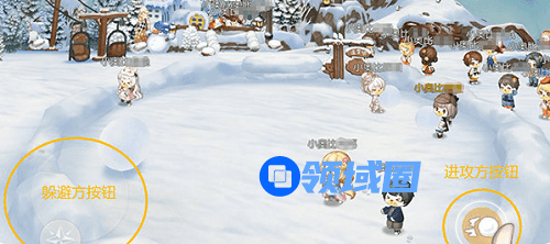 3、进攻方的小奥比点击按钮,可以在右键选择360°瞄准躲避方的奥比,然后发射雪球,躲避方的小奥比则可以点击左边方向键按钮躲避雪球,如果雪球砸到躲避方的奥比,就会被砸飞天噢。