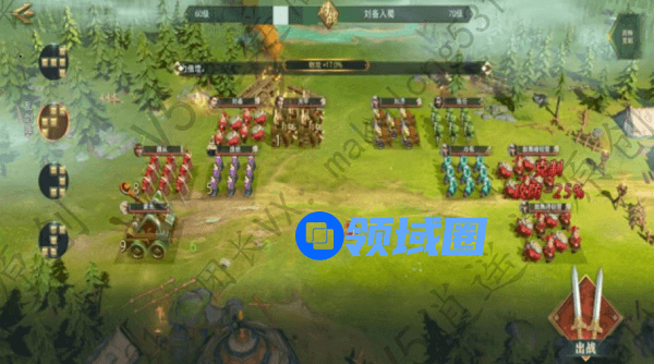 武将兵种搭配:关平(战象),刘备(旗鼓手),庞统(毒术士),魏延(素衣剑客),黄忠(投石炮车)。