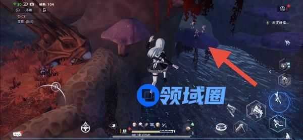 4.然后我们用右边的飞行装置让我们飞起来,接着到身后的大蘑菇是,箭头所指的位置,