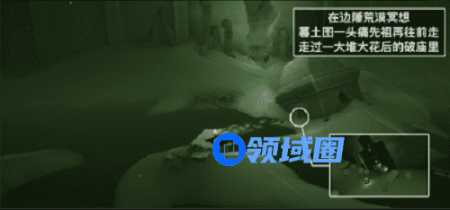 4、在边陲荒漠冥想:在暮土图一一大堆花前面的破庙内的石碑前光圈处打坐并留言。
