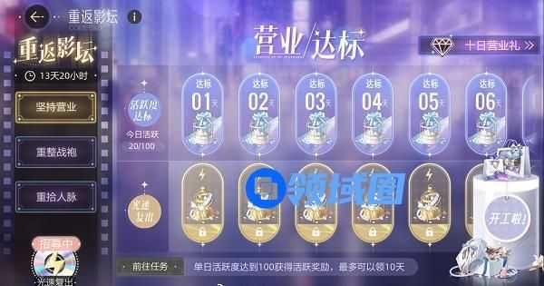 2.坚持营业,完成每日任务,达到100点活跃度时可领取一次奖励,共计可领10天。