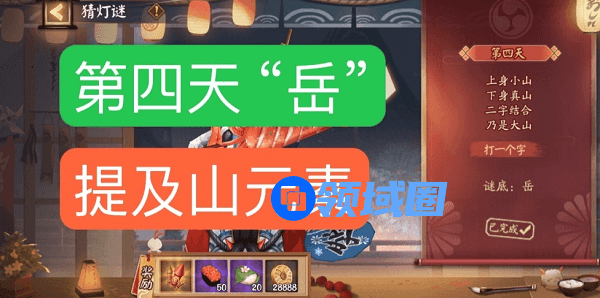 阴阳师灯谜上身小山下身真山二字结合乃是大山答案攻略