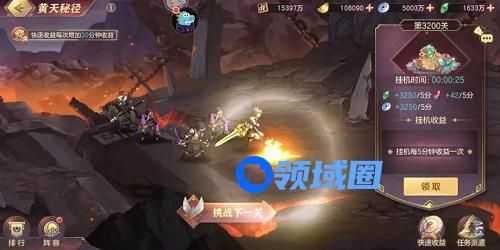 2、在姜果园初步成型,战力达到9000万左右时,通关黄天就不是难事了。