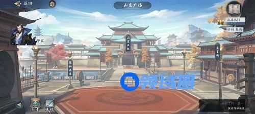 第二步 进入山庄大门-山庄广场 ,点击管家接取任务(聊天),开启庄主阁,山庄正殿。