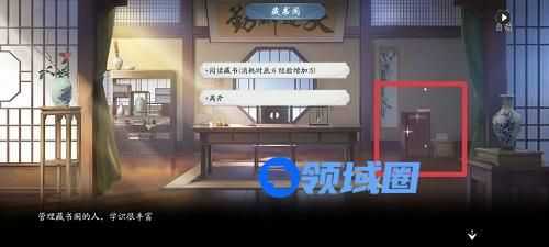 第六步 前往藏书阁,点击图书阁的人(聊天),阅读藏书:增加经验。 等级足够可以打开相应的物品。