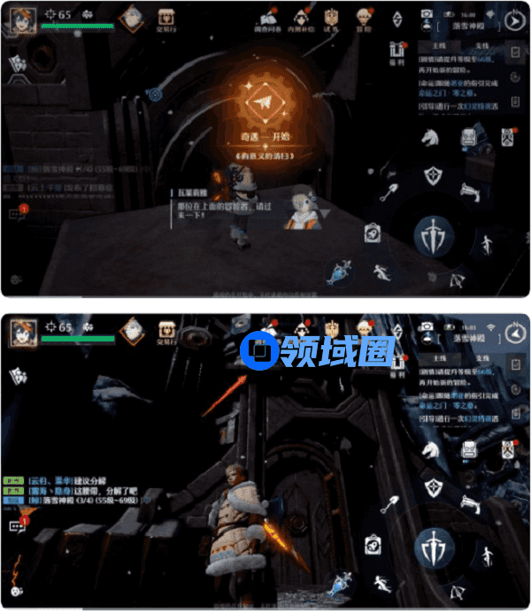 三、然后跟门口的NPC瓦莱莉雅对话,接下来登上神殿左右两侧的柱子完成清扫