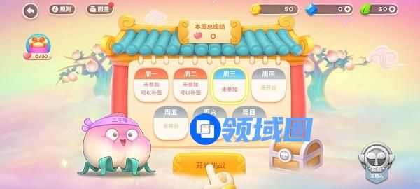 小伙伴每天有1次机会挑战当天的周赛关卡,不要浪费了哟~如果一不小心错过了某一天的周赛关卡,可以花费少量的宝石补签哦~