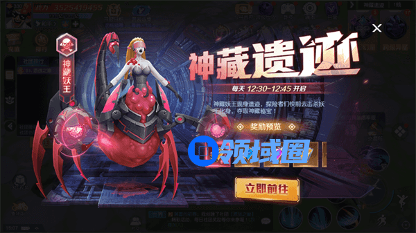 从开服第2天起,每天中午12:30~12:45将会开启大型跨服协力PVE玩法——「神藏遗迹」。