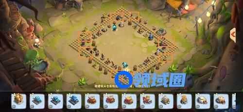 将资源建筑和功能建筑放置在城墙已经英雄的外侧,具体如图(【敌军来袭】中不会掉资源而且评分按照建筑所剩百分百,即使蚁后宫殿没了也不影响三星获胜)。