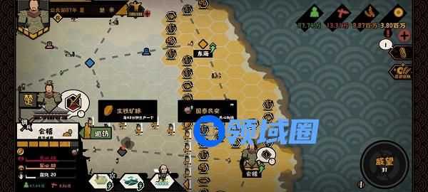 西部主要是铜山比较多,极北盛产马匹,东南方的铁矿相对而言更多,像朝代特色例如醮,士人,工匠目前还没有找到规律。