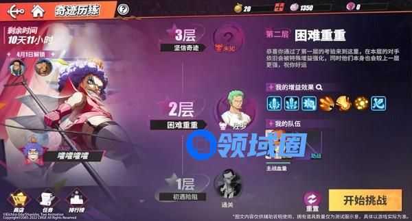 -船长开始冒险前可选择出战伙伴以及增益效果,参与奇迹历练挑战。一旦开始冒险,则在重置前无法再更换初始增益和主战伙伴。