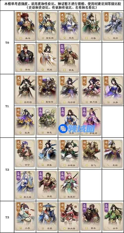 T3:有待开发的武将,不建议萌新使用。