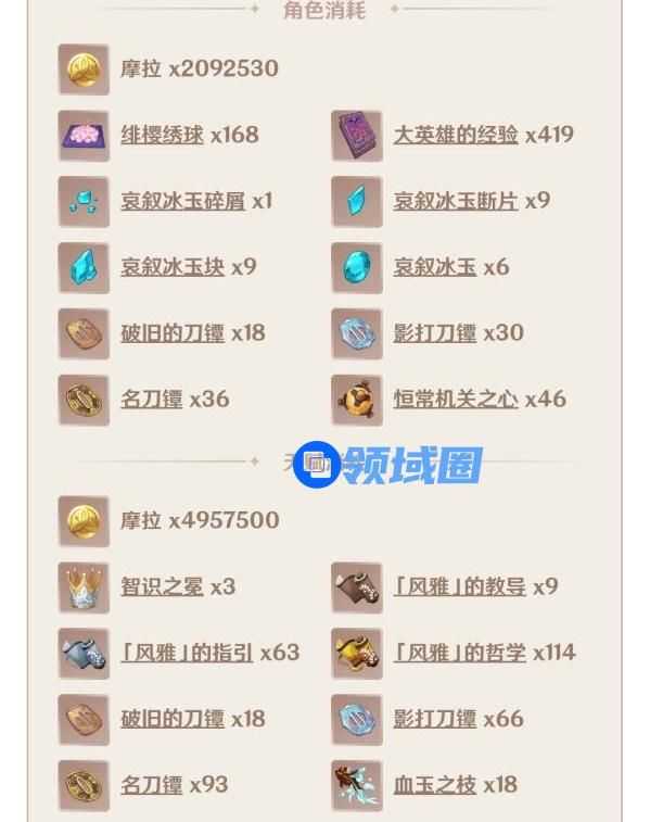 1.神里绫人需要的突破材料与她的妹妹神里凌华有很多相似,因为神里绫人还没有上线,所以先用神里凌华的突破图作为代替来给大家作参考。