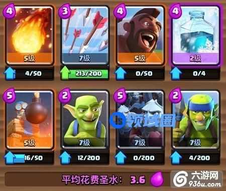 这套卡组只有1张紫卡,所以整体来说还是比较平民的啦!进攻点比较单一,主要还是利用野猪+哥布林+冰冻这套combo来拿下对方一塔。