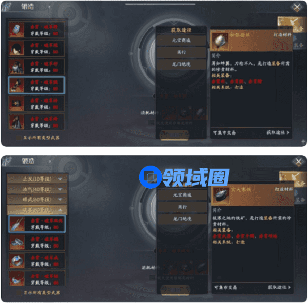 上衣、护腕、裤子的打造,需要秘银蚕丝,武器、手镯、项链的打造则必需玄天寒铁。这两样材料的产出非常相似,可通过龙门绝境活动获得,也可以在元宝商店和商行直接购买。
