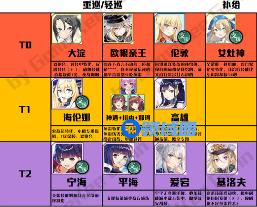 1、说明:因木作不同种类的战舰适用场景区别很大,以下强度节奏只做同种类纵向对比,不做横向对比,例如不存在加贺和胡德更强。小头像表示以伍中同时在场玛件生效时的情况。