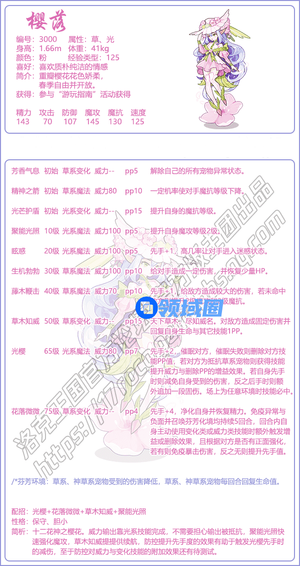 洛克王国樱落是新上线的宠物之一,技能和属性都十分不错,因此很多玩家想知道洛克王国樱落技能是什么?游戏宝小编为您带来洛克王国樱落技能表一览。