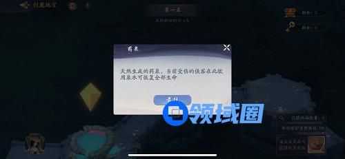 5、开启宝箱后我们继续闯荡,在闯荡中如果少侠的角色血量过低,那么我们就要尽快去寻找药泉来恢复血量继续战斗,除了击败敌人外,并且还会随机遇到一些闯关小问题,需要少侠发挥自己的才智来完美解答。