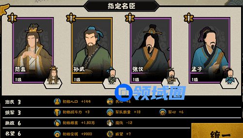 1、阵容组合:范蠡、孙武、张仪、孟子。