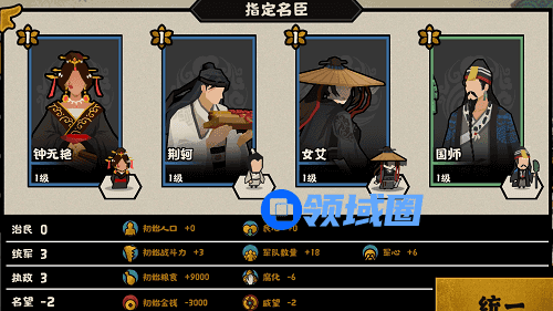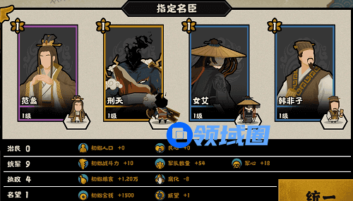 核心名臣张仪,张仪不仅能提高威望和他国好感度,还能提升用间;高威望和结盟可以为范蠡和孟子的施政提供条件,可获得更多的资源,然后配合孙武的用间,能轻松达成结盟、联盟。孟子可换成鬼谷子。