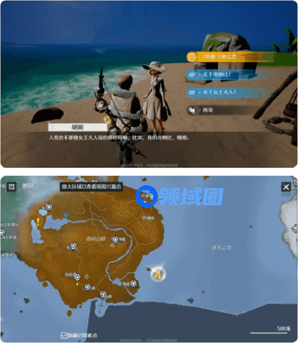 三、前往迦南山脉东南方的第二座小岛上与NPC:胡妮对话(迷失之海地理志贸易巷获取)