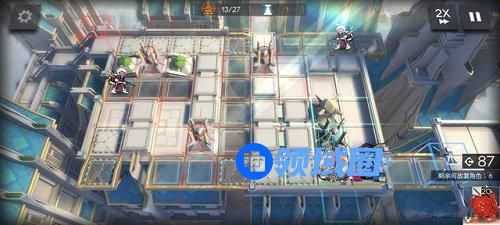 2、在家门口部署棘刺冲左侧攻击,等着暖机,cost好了以后第一时间部署泥岩冲左侧攻击,用来抗伤害和输出,挂机到棘刺扛不住敌人输出挂了为止,在棘刺的位置部署42姐,等着开大招收尾剩余的敌人即可。