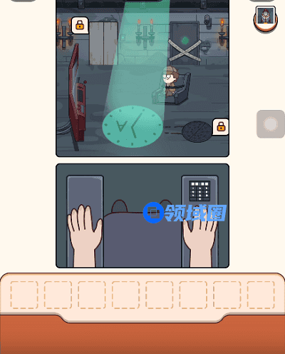 2、在左侧操作台点击井盖打开下水道开关,下去拿走胶带后回来,用胶带把右侧门上的血手印纸纹粘下来,然后用指纹去左边打开电梯门,进去后拧开管道的开关,放出污水后顺势把石头推下去。