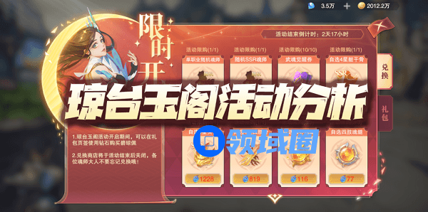 首先此次活动的兑换币碧琼佩我们可以在活动商城中进行购买,其中最低的成本是2钻石购买1个,限购1000个;接着是4钻石购买1个,限购1000个;接着如果大家把2钻石的购买完后还会出现6钻石购买1个的选项,以此类推,所以这个成本大概就是2000钻石兑换1000枚碧琼佩,4000钻石兑换1000枚碧琼佩,6000钻石兑换1000枚碧琼佩......