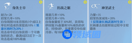 ①前期携带长枪天赋页的【身先士卒】+【神圣武士】,加上通用技能页的【历战之躯】。