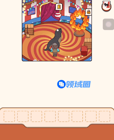 3、回到火圈前面,用水管的水灭火,从后面出去,用钥匙打开红色车门,点击红色按钮打开车灯,到光线处把光斑拼成一个圆,回车里拿出钳子,用其帮小猫逃生即可。
