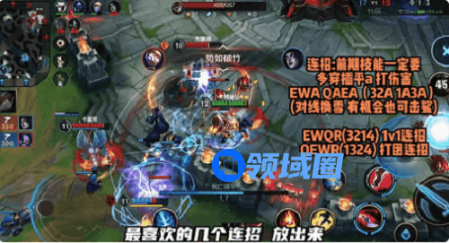 3、团战中的卡特以灵活着称,所以没有一个固定的连招顺序,在与敌人对线时,可使用EWQR(3214)连招打出高额爆发,在打团时,可使用QEWR(1324) 连招追求极致的AOE伤害最大化。