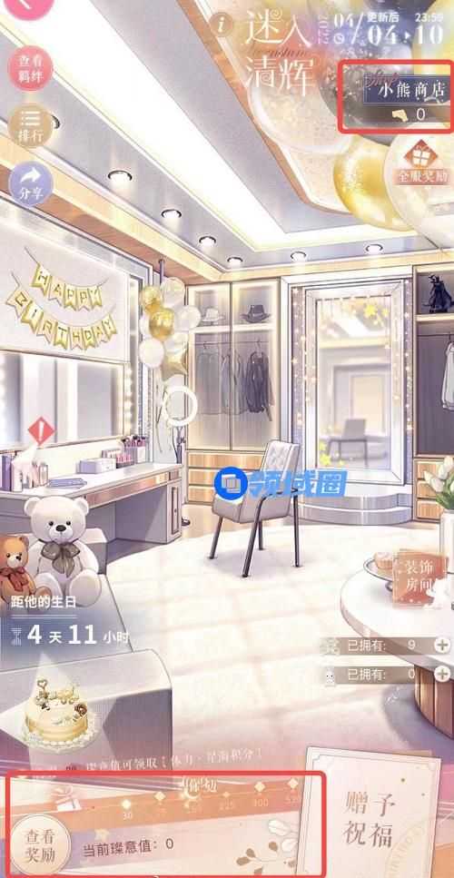纪念品商店(如图右上角):兑换往年生日卡,服装,在你身边