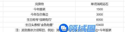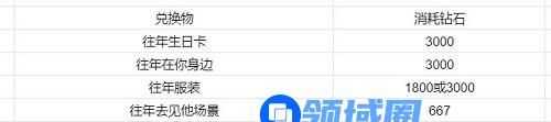 阶段2:(仅在达成1以后开放)拿去年服装/往年生日卡/在你身边等其他奖励,(往年单张生日卡和服装的花费均在3000钻左右,今年新服装的花费约为1800钻)