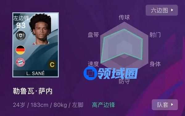 豪门拜仁星光熠熠,上版本的边路快马萨内是你不容错过的上分人选。满级盘球、控球达到了96和90的数值,在边路萨内可以轻松突破对手防线。同时89的身体控制再加上不错的模型也能让萨内在与对方后卫进行身体对抗时,不会轻易失去重心丢失球权。除了突破能力外,萨内惊人的双速也是可以很好的利用对手身后空档为球队进攻带来威胁。88的空中传球和93的弧度搭配上自带的精确传中技能,只要他一抬脚,下一刻就是巡航制导!