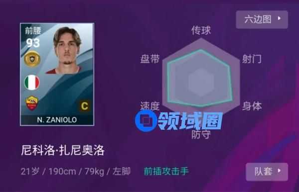 意大利年轻小将拥有着190cm的出色模型,前插攻击手的风格与90+的双速能让他在触发风格时快速冲击对手后防线,出色的模型也让他在对抗中不落下风。值得注意的是,高大身材的扎鸟也有着出色的脚下技术,盘带速度身体控制能力值都是非常优秀,同时还拥有90的体力。