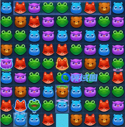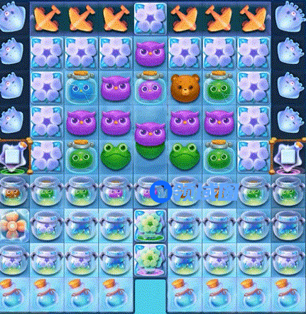 2、第二步:贴边三消并组合直线特效等辅助激活冲刺鱿鱼。