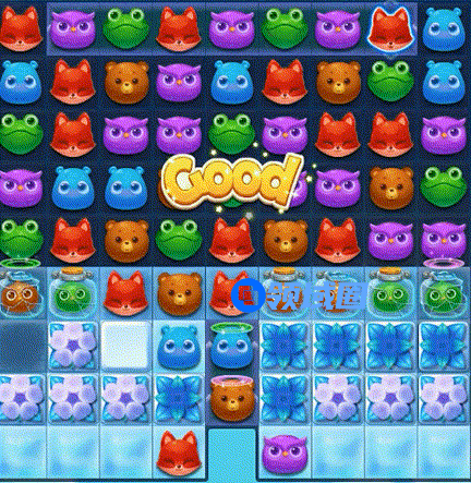 4、第四步:留意组合横向特效等助力消除雪块,救出被困的小动物。
