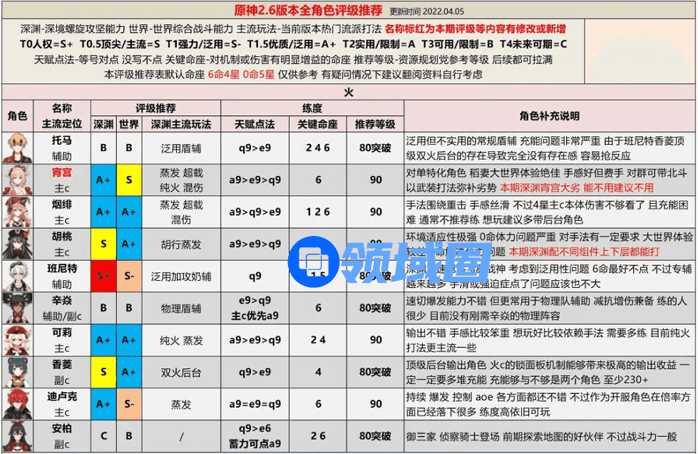 本期更新内容:1.新增5星角色神里绫人的评级配装推荐;2.新增5星武器波乱月白经津的配装推荐;3.结合新深渊更新了部分角色的评级;4.对关于深渊的评价进行标红处理,以后深渊评价如果有修改就不给名称标红了。原神的深渊环境多变,也使很多角色在环境下的表现不断变化,这一点是很有意思的。虽然有很多一招鲜吃遍天的顶级阵容,但一直玩一套也没那么有意思,打法多样,思路不断拓宽才是游戏健康发展的正确方向。