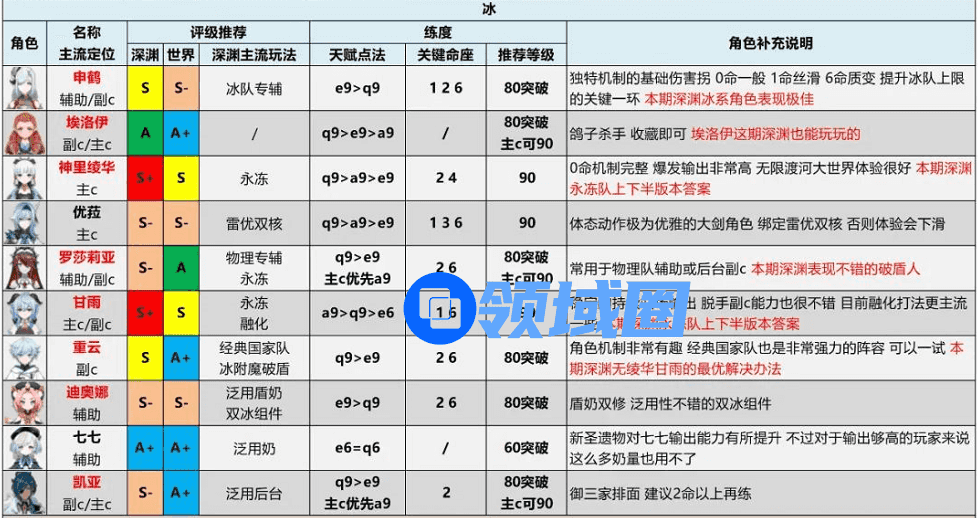 3.培养成本低,武器方面5星磐岩结绿表现非常好,个人推荐度其实是高于专武的,4星也可以用黑剑;圣遗物方面可以不刷新圣遗物本,4角斗、4沉沦都非常不错,顺带提高了冰水本的价值。
