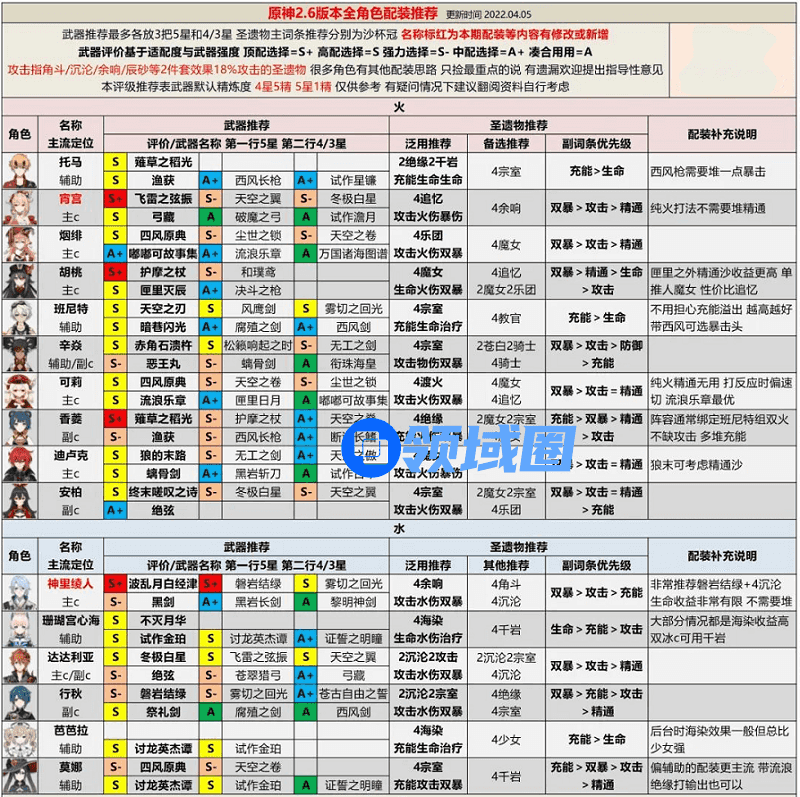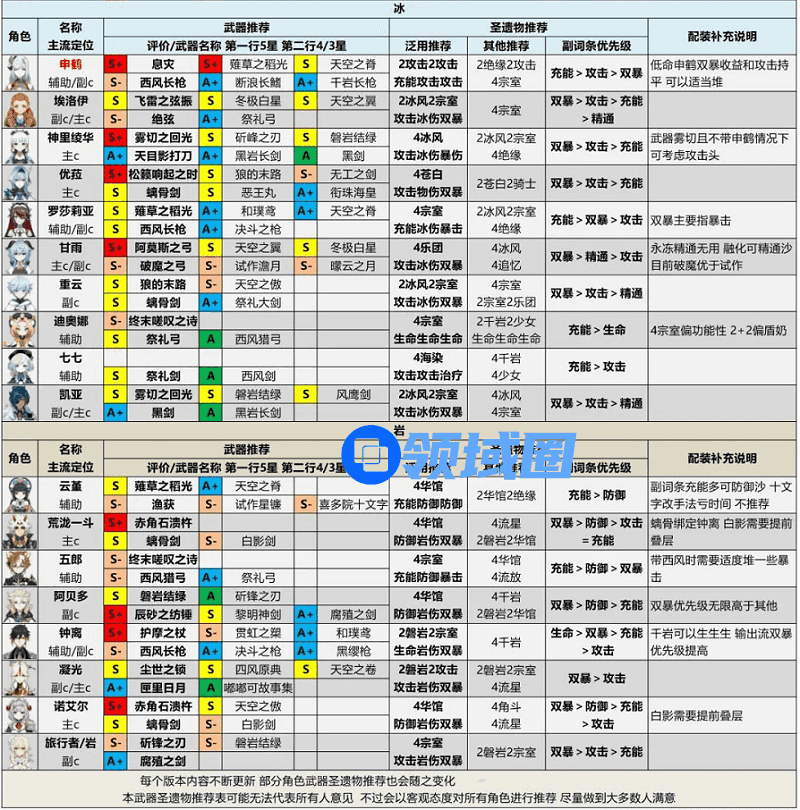 版本不断更新,环境不断变化,任何角色的强度定位与武器圣遗物推荐都有可能发生变化