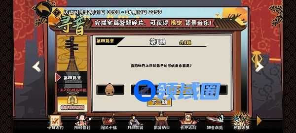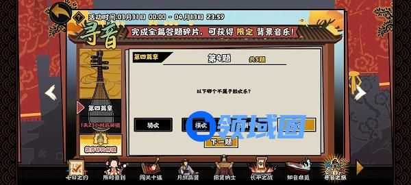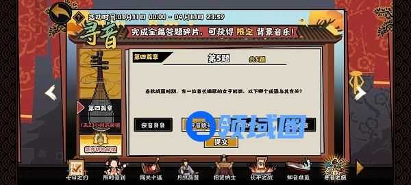 寻音之旅是无悔华夏近期推出的全新福利活动,很多玩家都想要知道无悔华夏寻音之旅第四篇章问题答案是什么,游戏宝小编为大家带来无悔华夏寻音之旅第四篇章问题答案大全。