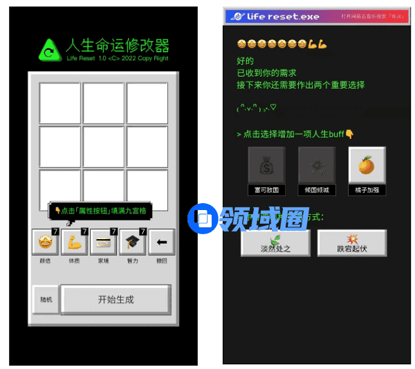 2、你曾在午夜懊悔过去的选择吗?你曾对镜幻想过拥有倾世的容貌吗?你曾在考试时拜托上天赐予你聪明的脑袋瓜吗?旁友!现在!改变命运的机会来了!给你一个重新选择“做人”的机会,一切由你自己选择,你将会走上怎样的人生呢?