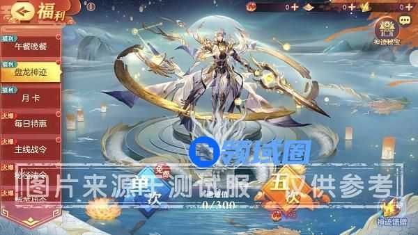 2.通过主界面右上角【福利】即可前往“盘龙神迹”,可每日免费祈福1次或消耗「龙珠」祈福,每次祈福将提升1点【神迹值】并随机获得一份“神迹馈赠”。累计【神迹值】达到300,即可获得珍稀道具「龙魂水晶」,可用于兑换当期传说级魂将皮肤。