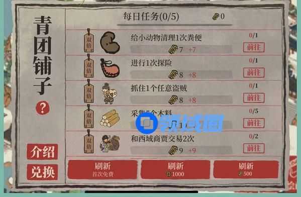 第一次免费刷新,第二次消耗1000铜钱,第三次消耗500蔬菜