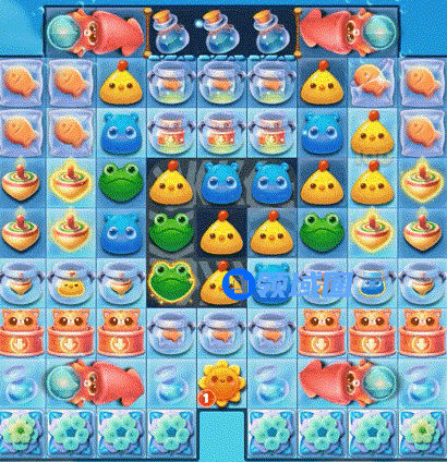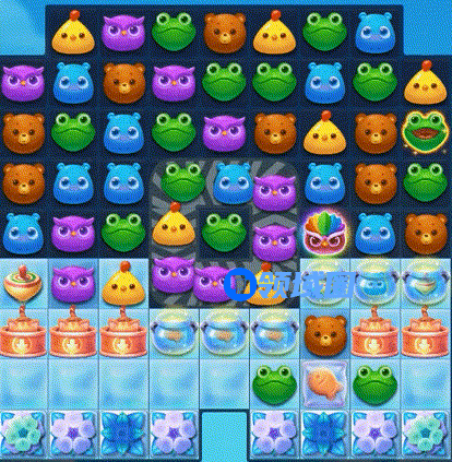 3、第三步:贴边打破魔法罐,爆炸特效与陀螺激活可助力消除雪块和小猫咪。