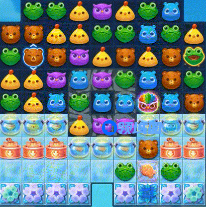 4、第四步:收尾时多留意组合直线、爆炸特效进行辅助消除同时配合贴边消除的方式清除底部雪块。