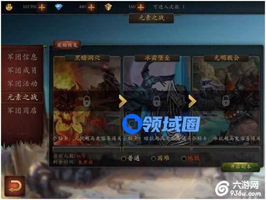 元素之战是军团专属战斗副本,你和你的军团成员们将在这里共同战斗,这里也是收获大量军团贡献和元素材料的好地方,千万别错过哦,错过了差距就在这产生了。