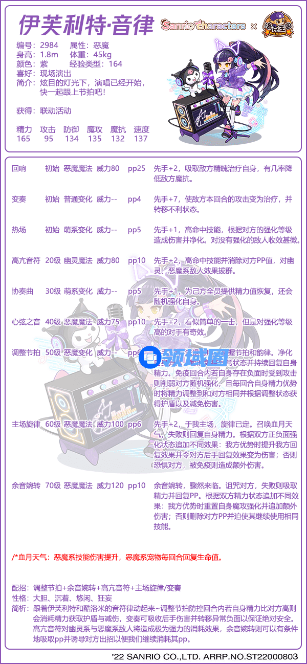 洛克王国伊芙利特音是三丽鸥联动宠物之一,技能和属性十分不错,因此很多玩家想知道洛克王国伊芙利特音律技能是什么?游戏宝小编为您带来洛克王国伊芙利特音律技能表介绍。